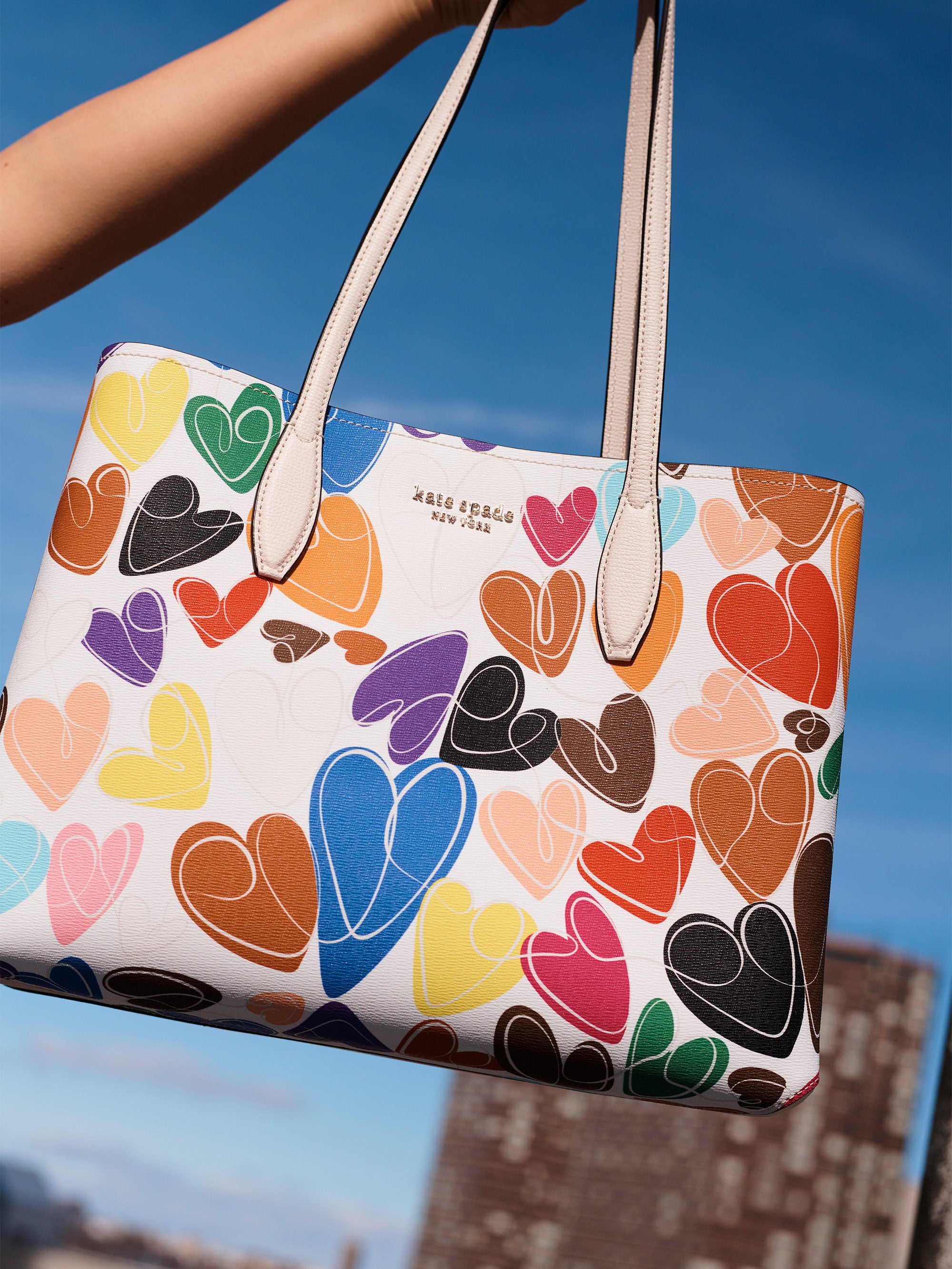 Kate Spade all day rainbow hearts large tote, $, available at Kate Spade